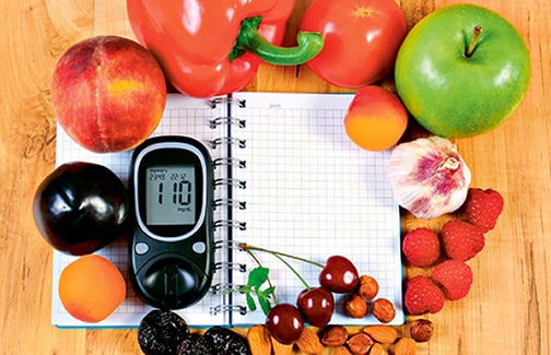 Pravilna ishrana treba da bude takva da održava optimalnu tjelesnu masu i obezbjeđuje sve neophodne hranljive supstance u optimalnim količinama. Potrebno je smanjiti unos prostih ugljenih hidrata (slatkiši, bijeli šećer), a povećati unos biljnih vlakana ( pšenične pahuljice). Neophodno je redovno kontrolisati: glukozu u krvi a po potrebi raditi i test tolerancije na glukozu, ako se sumnja na prikriveni dijabetes.