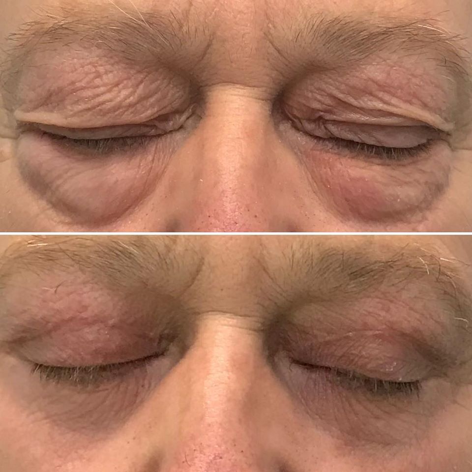 Ukoliko je tamni polukrug ispod očiju uslovljen sjenom otekline donjeg kapka zbog masnih jastičića, u tom slučaju može se očekivati da će takvo stanje biti korigovano. Ukoliko je ipak stanje uslovljeno pigmentacijom odnosno kvalitetom same kože pomenuto stanje neće biti korigovano. Potrebno je naglasiti da je i tada moguće poboljšati pomenuto stanje tamnih polukrugova ispod očiju ali upotrebom drugih modaliteta tretrmana kao što su to laseri ili kemijski pilinzi.
